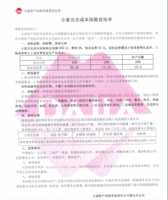 小麦完全成本保险宣传