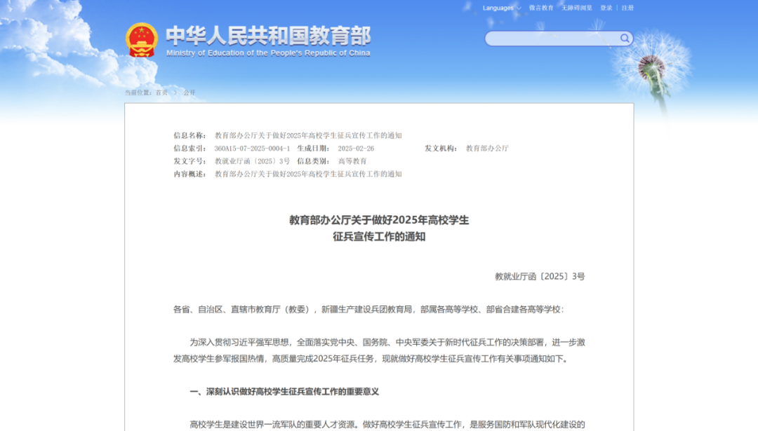 1.征集对象:依法服兵役是每个公民应尽的义务。以大学生为重点征集对象,突出各级各类学校毕业生征集。高校新生在入学前户籍所在地应征;高校应届毕业生和在校生可在学校所在地应征,也可在入学前户籍所在地应征。2.报名网站:全国征兵网(https://www.gfbzb.gov.cn)是全国征兵报名唯一官方网站。4.征集年龄:男青年为2025年年满18至22周岁,普通高等学校本专科毕业生、符合毕业条件的毕业班学生放宽至24周岁,研究生毕业生及在校生放宽至26周岁,初中毕业文化程度男青年不超过20周岁。女青年为2025年年满18至22周岁,全日制研究生应届毕业生及在校生放宽至26周岁,上半年征集的2024年普通高等学校全日制本专科应届毕业生放宽至23周岁。5.高校学生应征入伍服义务兵役,除享有优先报名应征、优先体检政审、优先审批定兵、优先安排使用“四个优先”政策,家庭按规定享受军属待遇外,还享受优先选拔使用、学费补偿和国家助学贷款代偿,以及退役后复学升学、就业服务等优惠政策。6.国家对应征入伍服兵役的高校学生,在入伍时对其在校期间缴纳的学费实行一次性补偿或获得的国家助学贷款实行代偿;应征入伍服兵役前正在高等学校就读的学生(含高校新生),退役后自愿复学或入学的,国家实行学费减免。7.学费补偿、国家助学贷款代偿以及学费减免标准,本专科生每生每年最高不超过20000元,研究生每生每年最高不超过25000元。超出标准部分不予补偿、代偿或减免。8.全日制在校退役士兵学生全部享受本专科生国家助学金,标准为每生每年3700元。9.入伍大学生按规定享受优待政策,义务兵家庭优待金由批准入伍地发放,其家庭享受军属待遇。10.符合条件的取得全日制本科学历和学士学位的毕业生(含毕业学年入伍,服役期间取得的),入伍1年半以上,可选拔为提干对象。13.参加军校保送入学对象选拔,同等条件下优先推荐。14.高校学生(含高校新生)服役期间按国家有关规定保留学籍或入学资格,退役后2年内允许复学或入学。15.经学校同意,大学生士兵退役后复学可转入本校其他专业学习。优先开放师范类专业。16.退役复学后免修公共体育、军事技能、军事理论等课程,可直接获得学分。17.高职(专科)在校生(含高校新生)入伍经历可作为毕业实习经历。18.高职(专科)毕业生及在校生(含高校新生)应征入伍,退役后完成高职(专科)学业的,可申请参加相关高校的退役大学生士兵免试普通专升本招生。符合成人高考专升本报考条件的退役军人,可申请免试就读所在省(区、市)的成人高校专升本。19.自主就业(自谋职业)退役士兵可在其全国普通高考统考成绩总分的基础上增加10分投档。在服役期间荣立二等功以上或被大军区以上单位授予荣誉称号的,增加20分投档。退役考生在与其他考生同等条件下优先录取。20.退役大学生士兵达到报考条件后,3年内参加全国硕士研究生招生考试,初试总分加10分,同等条件下优先录取。在服役期间获得三等战功、二等功以上奖励或者二级以上表彰,符合全国硕士研究生招生考试报考条件的,可申请免试(指初试)攻读硕士研究生。21.设立“退役大学生士兵专项硕士研究生招生计划”,专门招收退役大学生士兵攻读硕士研究生。2021年起每年安排计划8000人。22.应征入伍的高校毕业生退役后报考政法干警招录培养体制改革试点班的,教育考试笔试成绩总分加10分。23.自主就业退役士兵可在达到法定退休年龄前接受一次免费职业技能培训,享有参加适应性培训待遇,加快实现军地角色转换。24.退役军人参加职业技能提升行动接受培训,可按有关规定享受当地免费培训政策,符合条件的困难退役军人可享受生活补贴。参加培训并取得证书的人员,原则上每年可享受不超过3次补贴资助,但同一职业同一等级不可重复享受。25.高校毕业生士兵退役后一年内,可视同当年的应届毕业生,凭用人单位录(聘)用手续,向原就读高校再次申请办理就业相关手续,户档随迁(直辖市按照有关规定执行)。26.退役高校毕业生士兵可参加户籍所在地省级毕业生就业指导机构、原毕业高校就业招聘会,享受就业信息、重点推荐、就业指导等就业服务。27.乡镇补充干部、基层专职武装干部配备时,注重从退役大学生士兵中招录;在军队服役5年(含)以上的高校毕业生士兵可以报考面向服务基层项目人员定向考录的职位,优先录用建档立卡贫困户家庭高校毕业生退役士兵。28.各地在制定中小学教师招聘计划时,可面向退役军人单列计划,对应放宽年龄限制。退役军人在服役前1年内取得的中小学教师资格考试合格证明,其有效期可延长2年。29.退役士兵报考公务员、应聘事业单位职位的,在军队服现役经历视为基层工作经历,服现役年限计算为工龄。30.自2023年1月1日至2027年12月31日,自主就业退役士兵从事个体经营的,自办理个体工商户登记当月起,在3年(36个月)内按每户每年20000元为限额依次扣减其当年实际应缴纳的增值税、城市维护建设税、教育费附加、地方教育附加和个人所得税。限额标准最高可上浮20%,各省、自治区、直辖市人民政府可根据本地区实际情况在此幅度内确定具体限额标准。扫码查看高校学生应征入伍优惠政策摘编(2025年版)阅读 488