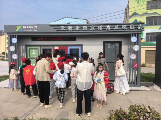 早上八点半,清晨的社区广场上,35组家庭在智能垃圾分类屋处集合。由社区志愿者带领孩子们参观并讲解垃圾分类知识,在志愿者的引导下,一些孩子试着登录了智能系统,参与AI互动知识问答、垃圾分类游戏等,让环保知识在科技互动中深入人心。