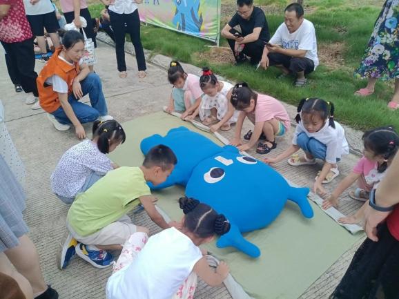在盛夏的炽热阳光下,望城岗社区新时代文明实践站联合城东社工站,以“多彩暑假 文明相伴”为主题,于8月7日在社区活动广场开展了一场暑期文明与安全教育实践活动。此次活动吸引了众多亲子家庭的热情参与,超过60组亲子家庭与社区携手并肩,以家社共育的温暖力量,共同绘制了一幅寓教于乐的成长画卷。