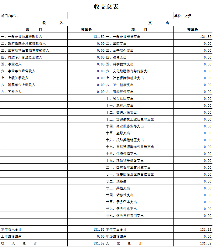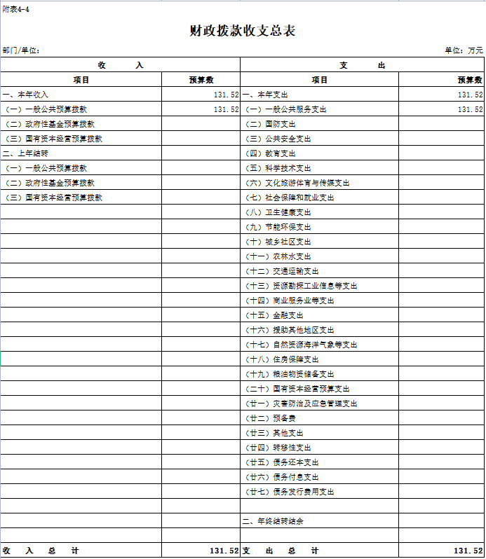 2024年预算收入131.52万元,其中,办公经费预算12万元,项目经费预算119.52万元,政府性基金收入0万元,事业收入0万元,其他收入0万元,纳入专户管理的非税收入0万元。