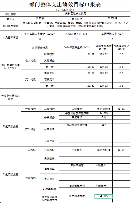 第四部分 随州高新区城东工作局2024年预算绩效情况