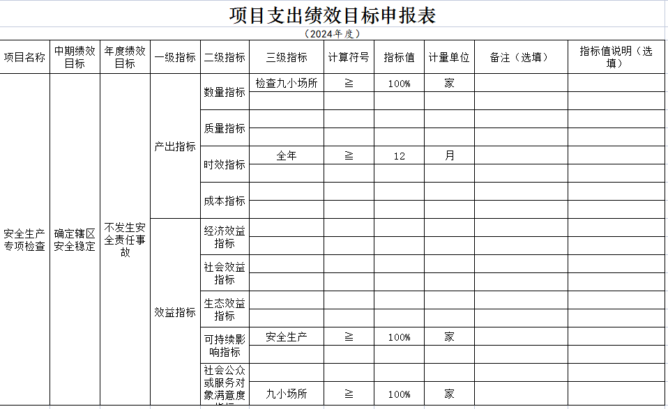项目绩效总目标是:确保辖区内安全稳定,不发生安全事故。