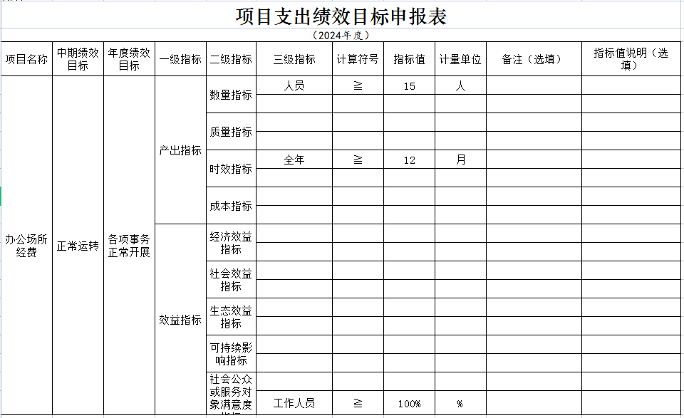 (四)“办公经费项目”主要内容是:城东工作局全体工作人员日常办公的基本支出。2024年预算安排12万元,12万元资金来源为当年一般公共预算资金。