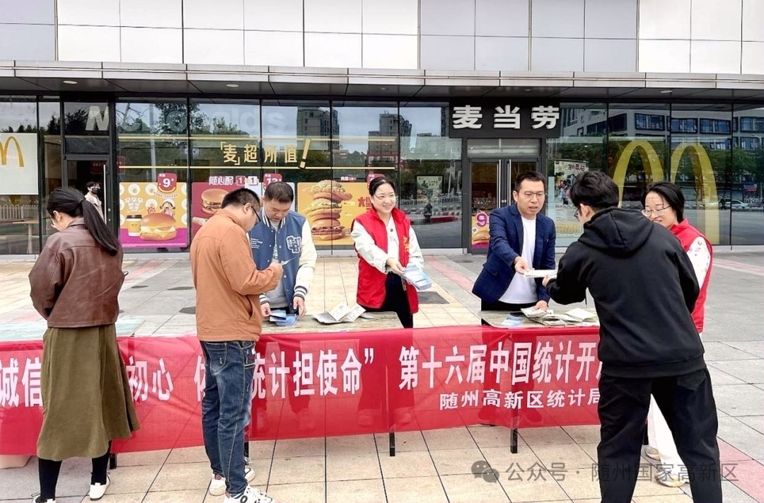 为进一步提高统计工作的社会认知度,增进市民对统计工作的理解与支持,9月23日,随州高新区科技创新(统计)局(以下简称“高新区统计局”)联合吴家老湾社区,在万达广场共同开展了以“诚信诚实守初心 依法统计担使命”为主题的第十六届“中国统计开放日”宣传活动。此次活动聚焦全国1%人口抽样调查、第四次全国农业普查等核心内容,广泛普及统计法律法规与专业知识。