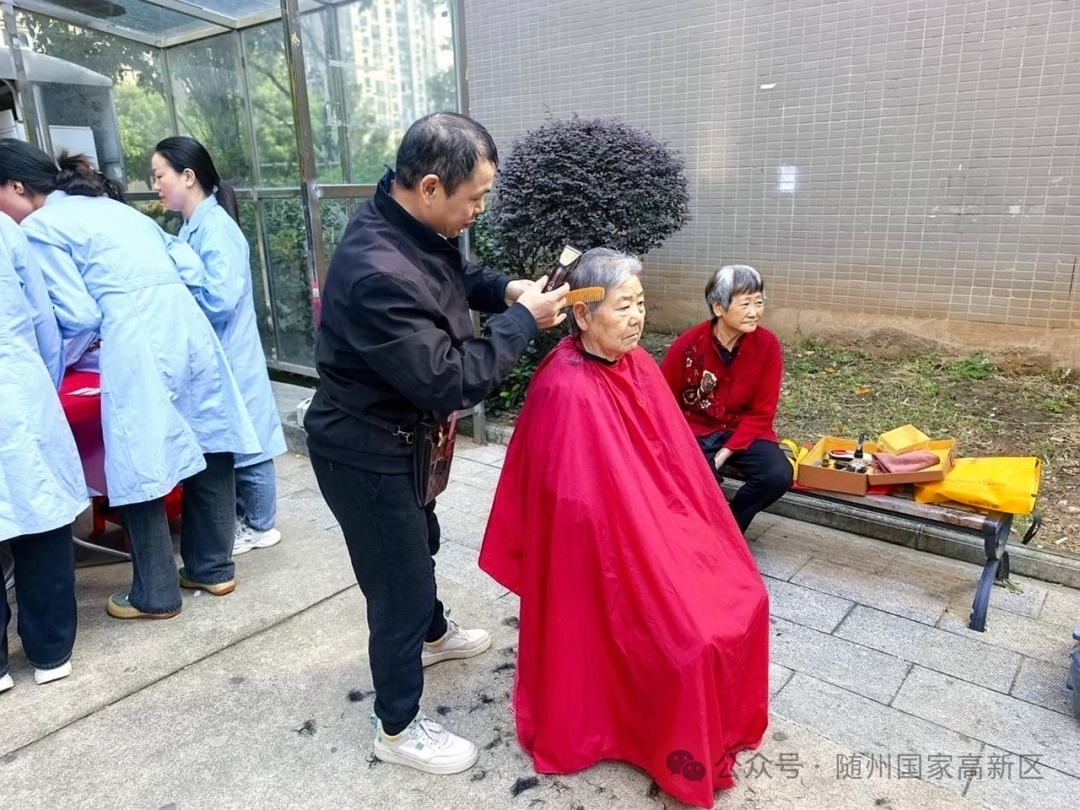 活动现场,各个服务摊位前都热闹非凡。理发摊位上,志愿者手持推子、梳子,全神贯注地为老人修剪头发,红色围布上不时落下细碎的发丝。“年纪大了,出门找理发店太麻烦,这次下个楼就能剪发,理完头发整个人都清爽了!”刚理完发的张奶奶对着志愿者竖起大拇指,脸上洋溢着满意的笑容。