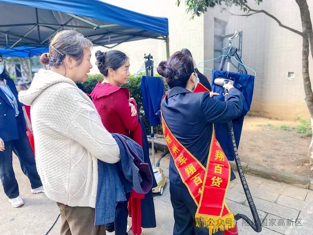 “您这件衣服熨烫后更显精神了。”随州军翔百货的工作人员一边熟练操作蒸汽熨烫机,一边和居民亲切交流。居民王女士抱着刚熨好的衣服感慨道:“马上换季了,许多厚衣服都压出褶皱了,这次能免费熨烫,省了我不少事。”旁边还有几位居民拿着衣物,笑着排队等候。