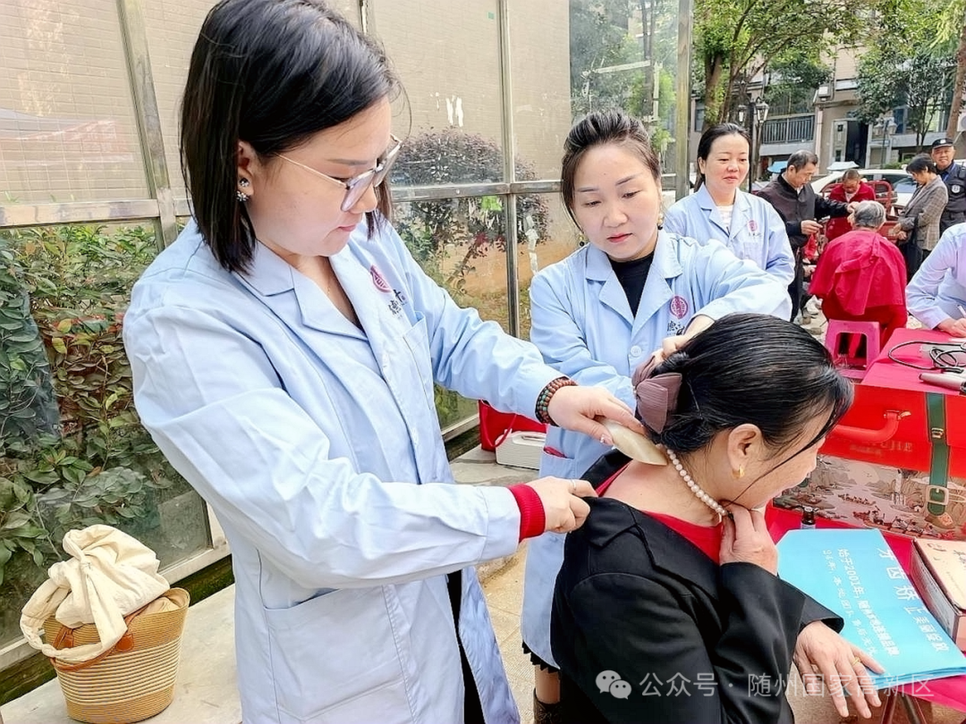 中医服务摊位前,医护人员为居民们提供中医问诊、量血压等服务,耐心细致地解答大家关于健康的疑问。他们还根据居民的身体状况,为有需要的人进行刮痧、拔罐等中医理疗,帮助大家缓解身体的不适。
