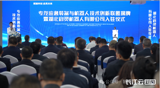 11月6日,专汽应急装备与机器人技术创新联盟揭牌暨启灵机器人有限公司入驻仪式在随州(武汉)离岸科创中心隆重举行。